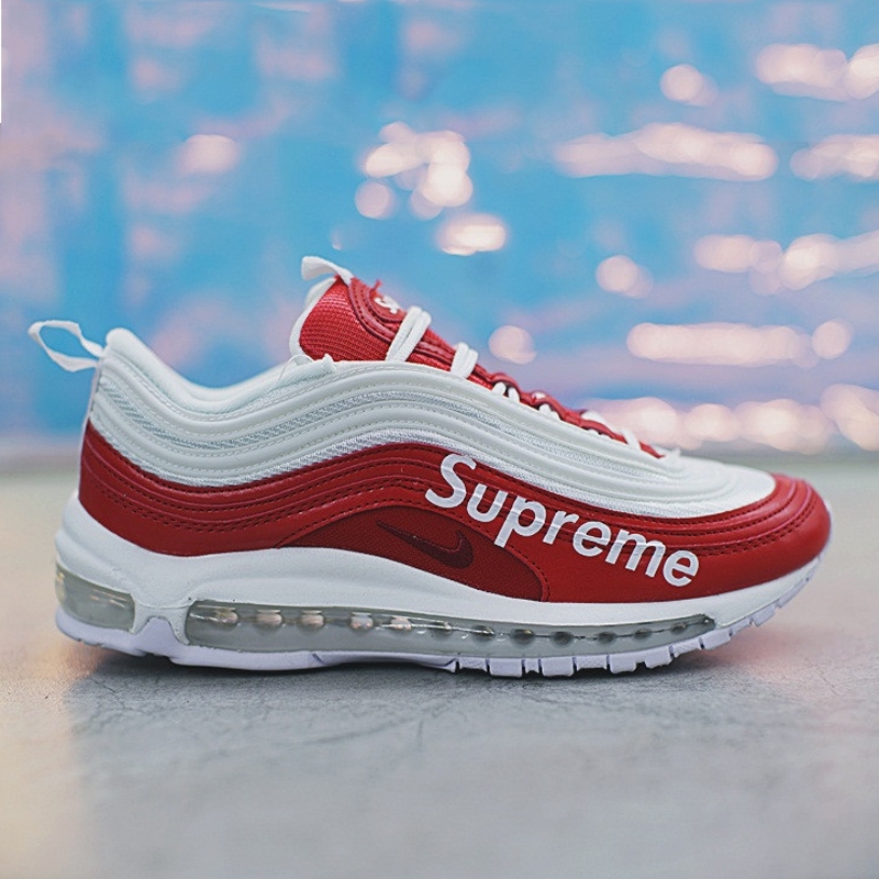 Supreme X Nike Air Max 97 Men And Women White Red Breathable Sport